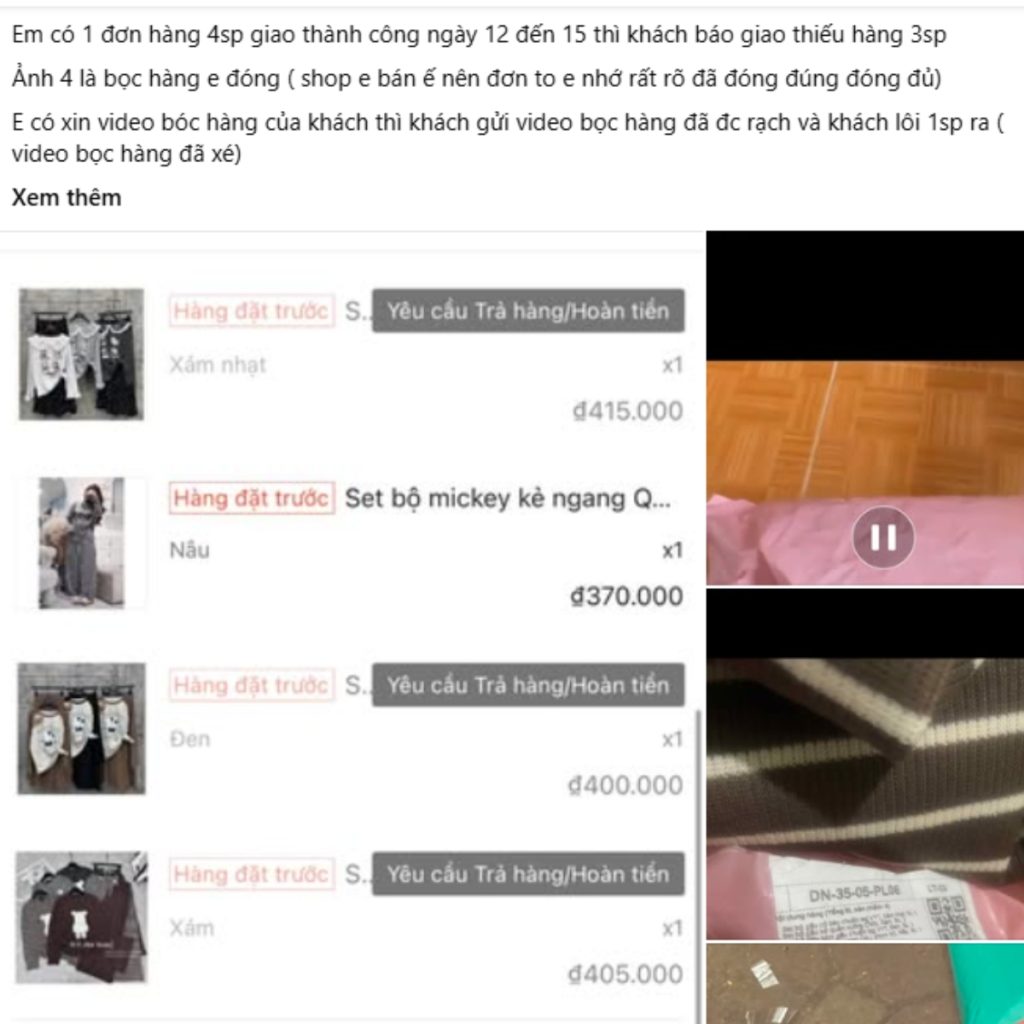 Sau khi nhận hàng, khách hàng phản hồi rằng chỉ nhận được 3/4 sản phẩm, đồng thời gửi yêu cầu hoàn hàng với lý do thiếu hàng.